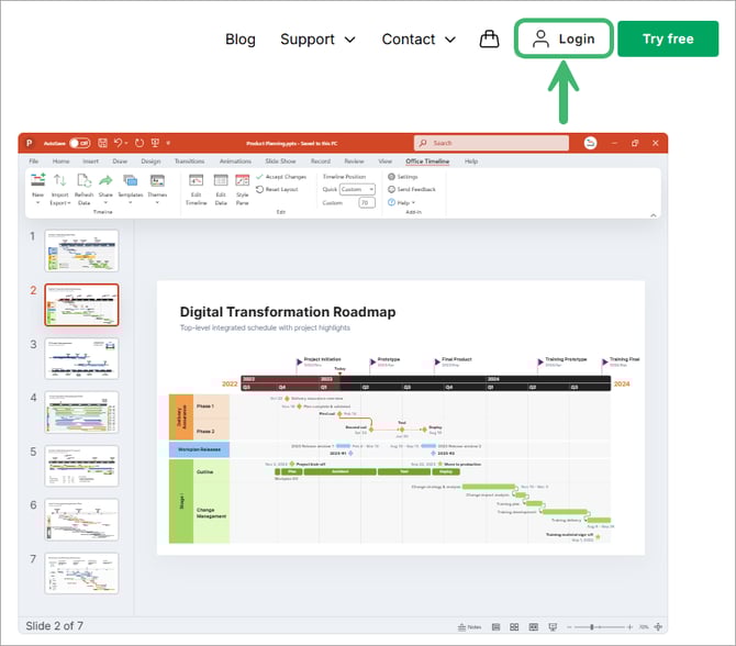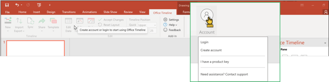 Users can open PowerPoint, go to the Office Timeline tab, and click Sign In to log in using the same email address that was used for the invitation.