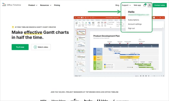 Visit the Office Timeline homepage and sign in using your license manager credentials. Navigate to the Subscriptions page to manage your account and licenses.