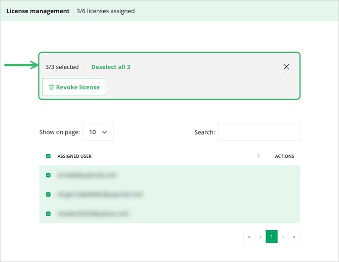 Scroll down to License management. Enter an email address and click Assign license. Here, you can view and manage Assigned Users.
