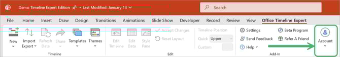 Look for the Office Timeline tab in the PowerPoint ribbon.