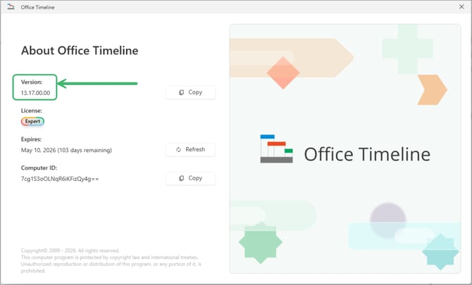 Before signing in or activating Office Timeline, it’s important to confirm that the add-in is installed and that you’re using the latest version.